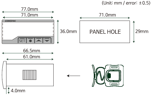Size (mm) | 77(W) x 35(H) x 66.5(D) |