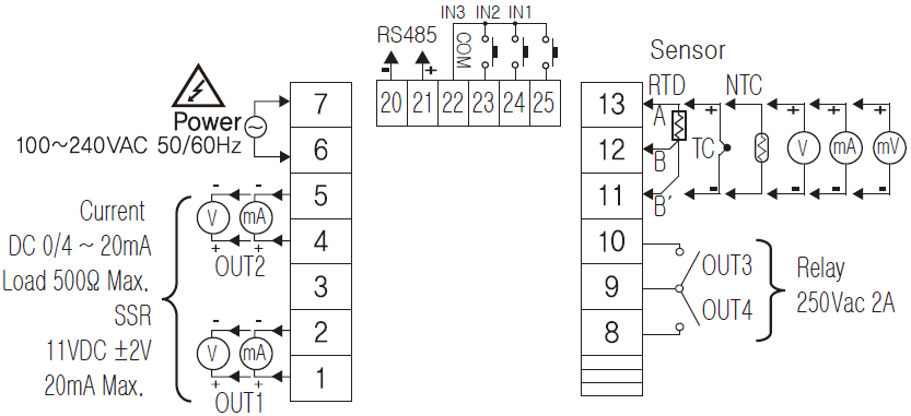 ※ Relay connection capacity is less than 250VAC 2A.