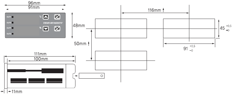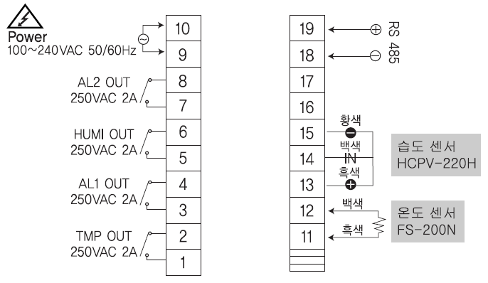 > 2단 출력 : 경보 출력 또는 온습도 제어출력