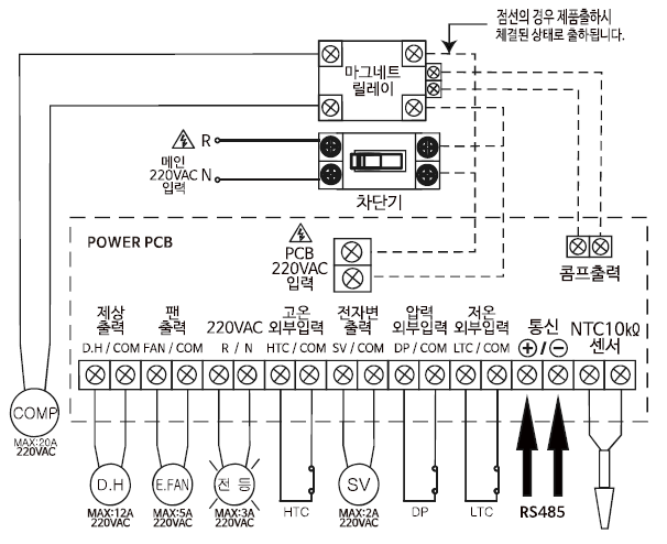 > 4개의 출력(콤프,제상,팬,전자변)제어
