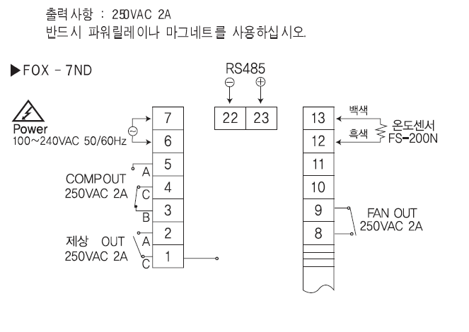 출력 | 3 relay (1c 2a 250VAC 2A) 1R (Comp), 2R (Defrost), 3R (FAN) |