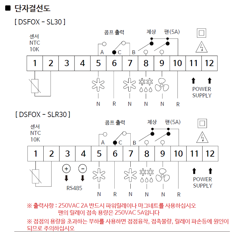 기능 | 콤프 / 제상 / 에바휀 제어 / 485통신(SLR30) |