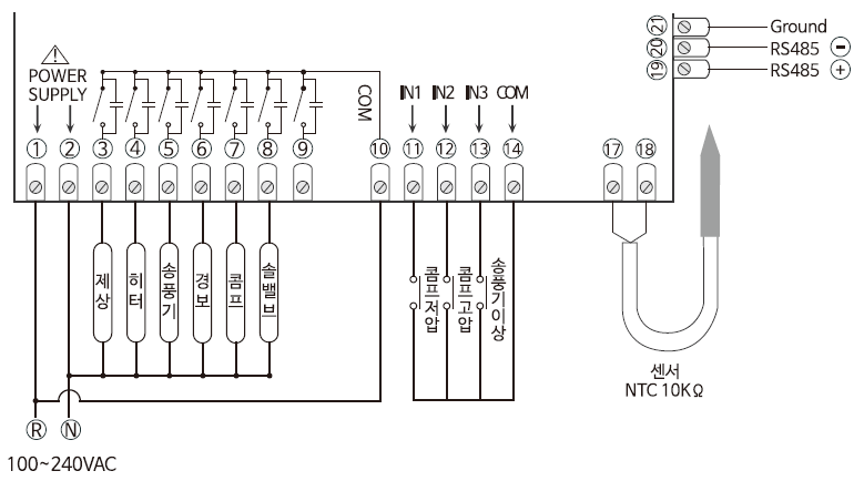> 콤프 저압,고압, 송풍기 이상신호 접점